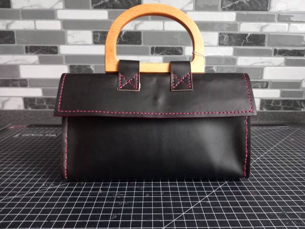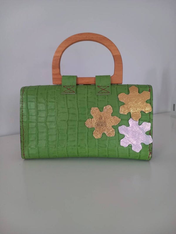 Handtasche mit Holzgriff, verschiedene Farben und Leder, ab